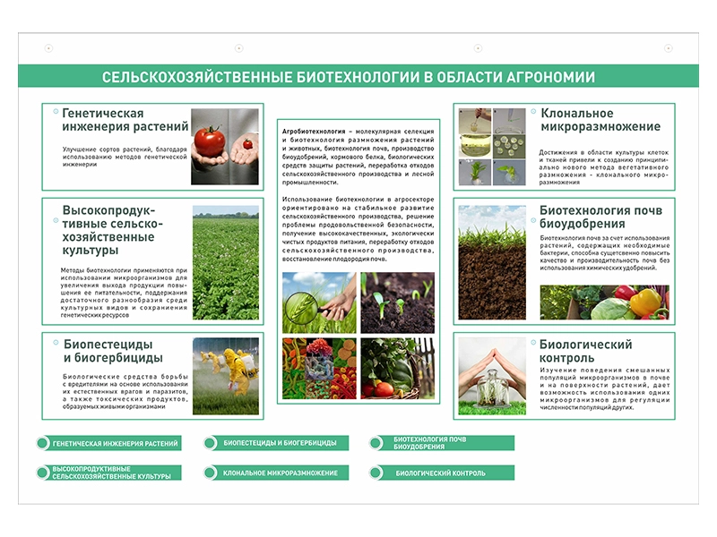 - Сельскохозяйственные биотехнологии в области агрономии.