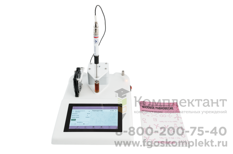 Учебно-лабораторный комплекс предназначен для проведения лабораторных работ по разделу «Фазовое равновесие» дисциплины «Физическая химия» учащимися высших, средних специальных учебных заведений, а также может использоваться в специализированных и аналитических лабораториях. Модуль позволяет организовать одновременную работу от 1 до 3 человек.