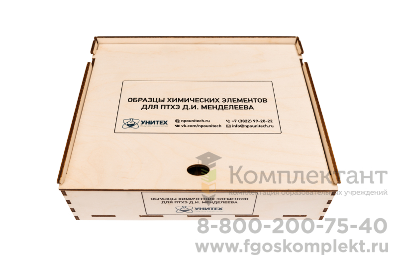 - 74 муляжей редких, нестабильных или опасных химических элементов.
