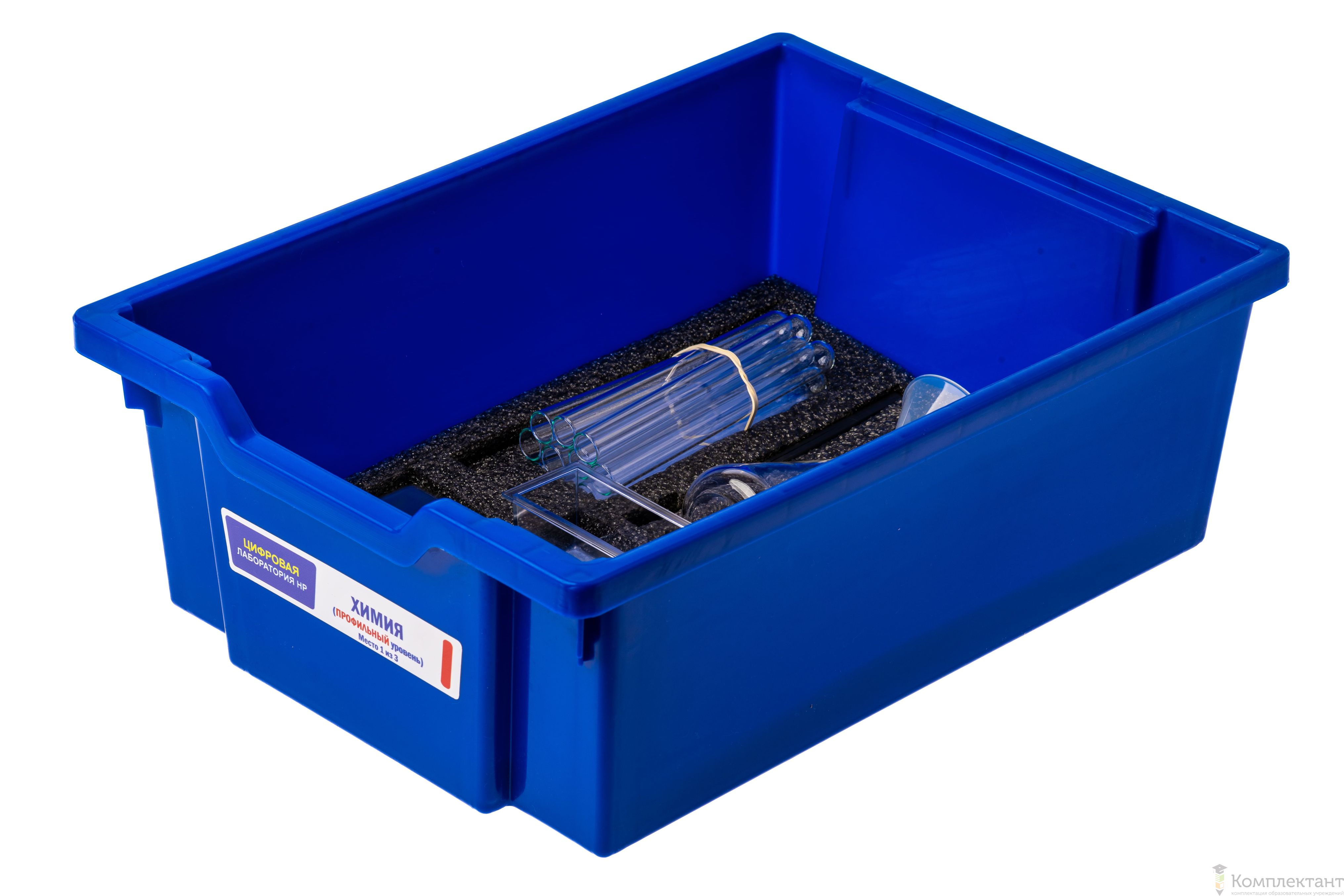 Цифровая лаборатория укомплектована в пластиковую систему хранения, которая закрывается прозрачной пластиковой крышкой на защелках для обеспечения наблюдения за содержимым. Комплект оборудования и датчики в системе хранения располагаются на ложементах.